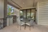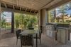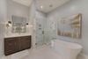 The master suite features a private exit to the patio and includes a walk-in closet, separate his and hers vanities, a stand-alone soaker tub, and a floor-to-ceiling tile shower. There are two additional guest bedrooms; each bedroom has ample storage and private access to the front patio.