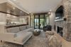 This condominium offers a mountain escape at any season. Featuring an open-concept design, the living room, kitchen, and dining room all flow seamlessly together. The kitchen features Wolf Sub Zero stainless steel appliances, a large island with additional bar seating, quartz countertops, and a full backsplash. With access to the covered wrap-around patio with a built-in BBQ and views of the practice range, the living room includes a floor-to-ceiling stone fireplace, wood flooring throughout and is absolutely perfect for a cozy evening.