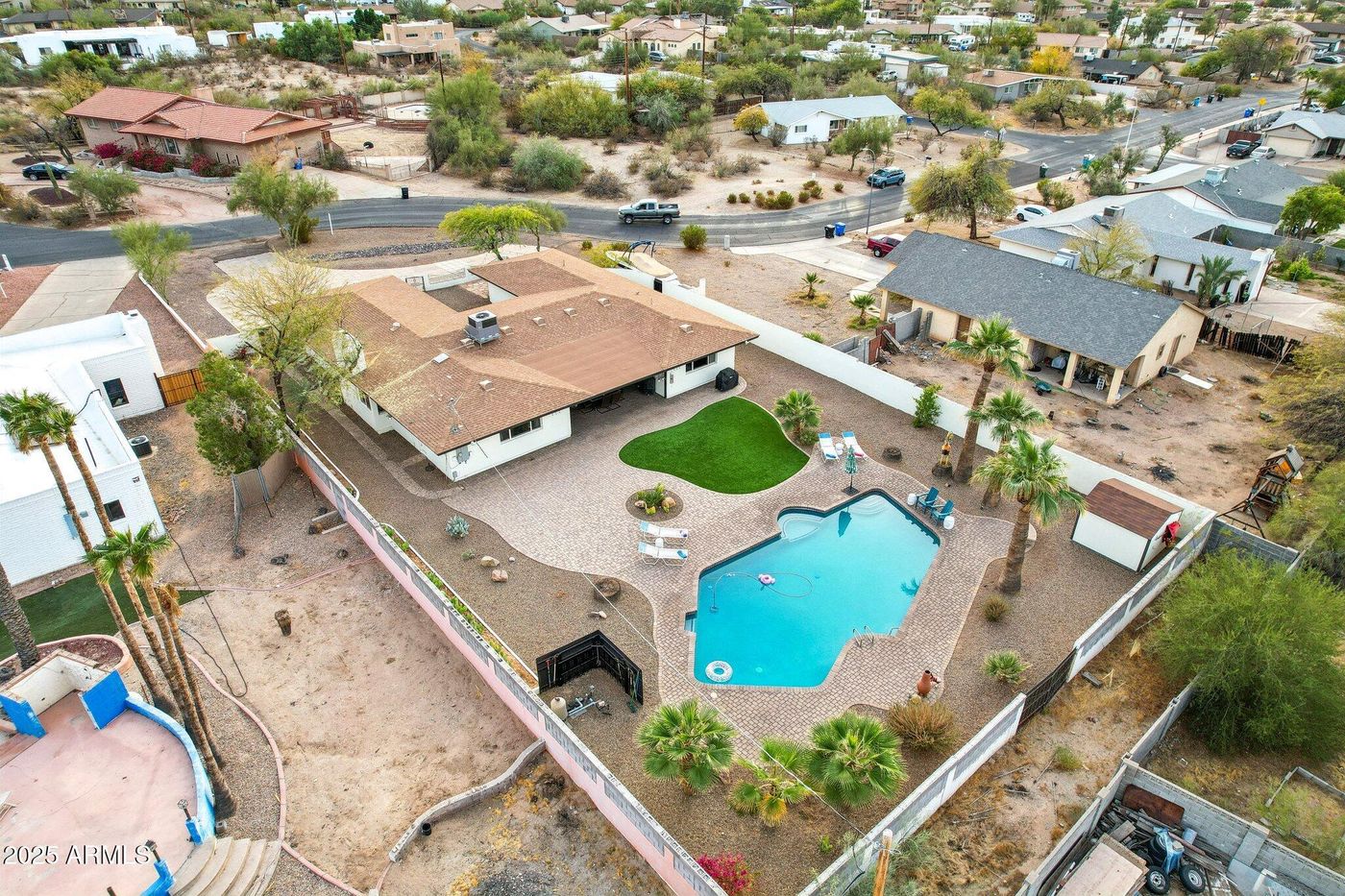 Welcome home to 1750 E Euclid Ave, a spacious single-level retreat nestled near the foothills of South Mountain. This home boasts over $100,000 in recent improvement including an Updated Resort style backyard and kitchen updated. This stunning residence boasts breathtaking mountain views and city lights, a circular driveway with a front courtyard, and a resort-style backyard featuring a diving pool - perfect for outdoor entertaining. This home offers true freedom with no HOA. Enjoy over 2700 square feet of living space, including 3 generously sized bedrooms, 2.5 baths, 2 large flex spaces that can be office, den, workout space and ample storage throughout. The north/south exposure provides abundant natural light. Bring your boat, RV, and all your toys - there's plenty of room! Explore nearby hiking and biking trails