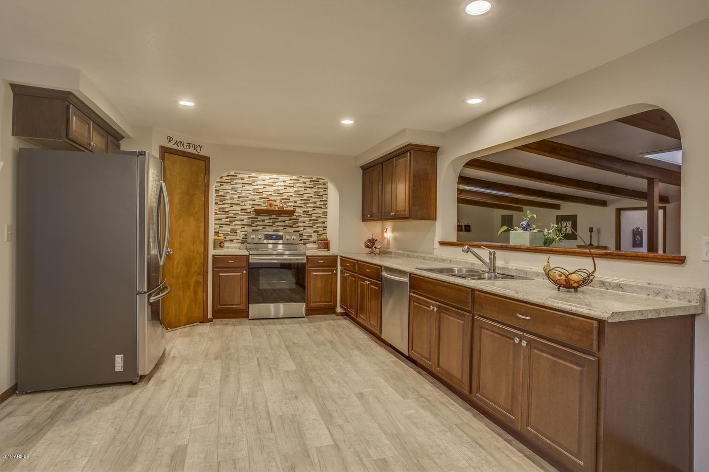 STUNNING single level 2100+ sqft home located on 1/2 acre just 20 minutes South of Payson. This 3 bedroom, 2 bath home has been REMODELED with gorgeous new kitchen cabinets and counters, new stainless steel appliances, pantry, new wood look alike tile, beautiful master bedroom suite with huge 6 x 17 walk in closet w/barn door, French doors for direct access to the private backyard and an UPDATED master bathroom. The living room has a wood burning fireplace and the family and game room has a pellet stove, wood beam ceiling and Spanish Saltillo tile. This property offers lots of PRIVACY, mountain views, room for gardening, and best of all, HORSE PRIVILEGES. Saddle up at home and go riding for hours. PRIVATE WELL, NEW SEPTIC, roof in 2016, RV hook up, room for toys GREAT COUNTRY LIVING!