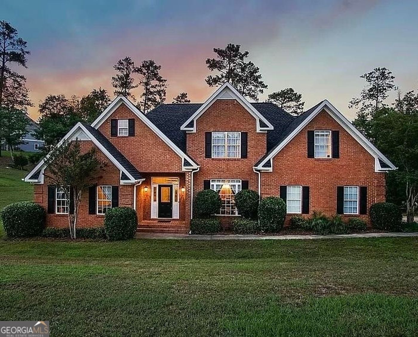 Water front custom brick home w/ boat dock and electric boat lift on a large lake surrounded by  gorgeous landscaping.  Sit on your dock with a fire pit & fish or just kickback on your large covered deck and enjoy the panoramic view.  Numerous flowering shrubs and trees abound that highlight the gorgeous landscaping. Home's entrance has a refined & classic leaded glass front door welcoming all.  Vaulted ceilings flow from the foyer to the living room, past den & breakfast nook amplifying the home's openness.  Elegant fireplace emphasizes the large living room w/ high ceilings. The beautiful kitchen has granite counters, separate island, ample cabinets & pantries. Classic formal dining room for your guests. Hardwood floors & rustic bannisters emanate to the 2nd floor bedrooms. Master bedroom is on the main floor with a trey ceiling for a spacious feel & look while resting in bed. The master bathroom has travertine tiled floors, double granite vanities w/ a tiled jetted tub & a travertine tiled shower. A large walkin closet of course. Covered back deck for your breakfast or barbecues. Front & back yards have numerous picturesque flowering shrubs/trees that accent the beautiful and natural landscaping. Friendly HOA  has 24/7 security cameras with an exclusive card gated community park a very short walk from your home. This large park on the lake has boat ramps & is great for walking, biking, pets, & even swimming on a white sandy beach. You are outside the city yet only a few short minutes from Macon restaurants/mall/gyms etc. Easy access to the Interstate places you in Atlanta in just over an hour and Warner Robbins in minutes. This home is one of just a few on a great lake with a boat dock yet still close to a major city ensuring your home investment will remain secure.