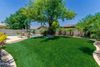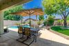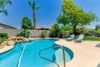 A highlight is the large inviting backyard oasis, featuring a sparkling pool and waterfall surrounded by a patio perfect for lounging and entertaining. The large mature tree and newer turf provide shade and easy maintenance.