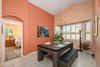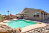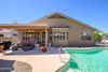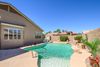 Seller concessions of $10,000 to buyer! This is one hard to resist cute & charming home complete w/ a fun backyard w/ a sparkling pool w/ a NEW heater/chiller & waterfall. Enjoy those warmer days in your own private oasis. The home has been updated w/ NEW carpet, NEW stainless appliances, NEW interior paint, NEW garbage disposal, & refreshed tile flooring. This Jokake model has 2 nice size bedrooms, 2 baths, & a den. There is a great room where you can snuggle up in front of the fireplace for those colder days & a dining area that can serve multiple purposes like this home- the option w/ a dining/gaming table for entertaining fun. The shutters throughout add functionality & ambiance. This well positioned home is located on a corner lot, w/ mountain views , & beautiful sunsets & sunrises