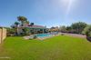 CalculateGOLF COURSE LOT in the highly sought after Bellair community! This is a rare opportunity to own this beautiful home, where you will enjoy the stunning views of the golf course. Enjoy endless sunsets from your backyard patio overlooking the sparkling pool and lush landscape. Beautifully decorated and updated, the interior features a formal living room and dining room, creating a spacious flow into the kitchen and living room with a view of the backyard and golf course. With wood-like laminate tile throughout and no carpet, the kitchen boasts an updated backsplash, hood, and Corian countertops. The bathrooms have been updated in 2023 with new vanities and toilets. The primary bathroom has a separate exit door to the backyard, perfect for accessing the pool and extended length patio. Additional features include dimmers on most lights, French doors to the back patio, an RV gate, and a fountain. The pool has been recently updated in 2023 with a new pool pump, new cool decking, and a Pebble Tech finish. The property also offers access to the rec center, which has three pools and tennis/pickleball courts.