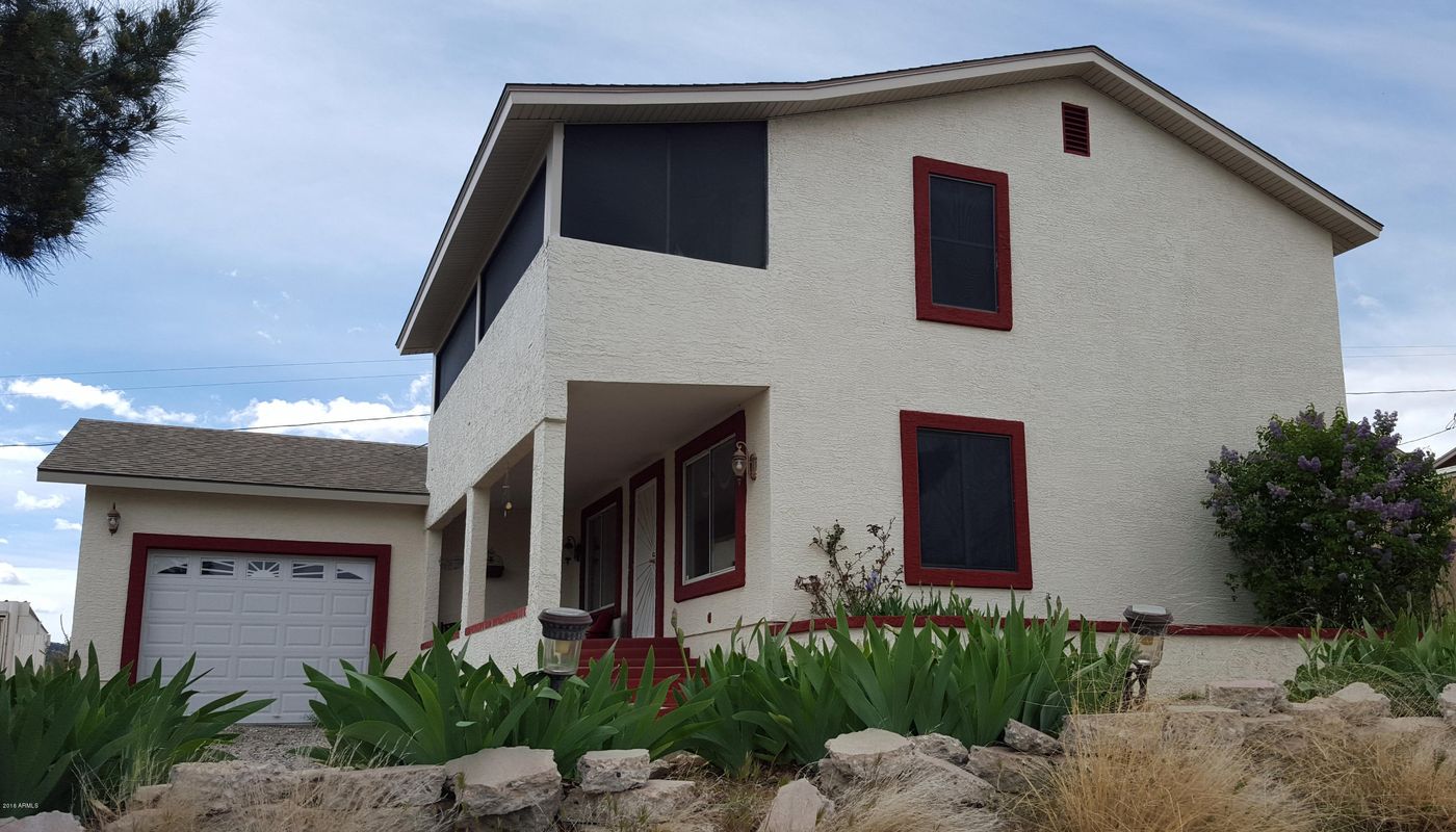 Mountain & valley views are yours to enjoy from this 3 bedroom, 2 bath hillside home on over 1/4 acre near Model Creek K-8 school.From the covered front porch enter the spacious tiled great room separated from the well-appointed kitchen by convenient breakfast bar. Oversized windows provide light and viewing opportunities while dining or relaxing with family. Large sunken family room, first floor bedroom, laundry, & full bath complete the lower level along with single garage with elec. opener. Upstairs, both the master & second bedroom offer access to covered balcony through separate french doors where you can enjoy the stars in this ''dark skies'' community. The 2nd level bath features a jetted tub. Outside, you'll discover a mostly fenced yard with play & garden areas, fruit trees and pergola covered patio overlooking the koi pond. A roomy storage shed just needs some finishing on one side in order to hold lawn and garden tools securely. This north/south oriented home is located at about 4500' affording a cool escape from the desert heat. It has both refrigeration and evap cooling. Come see this home in delightful, rural Peeples Valley. Seller providing 1 year American Home Shield home protection plan.