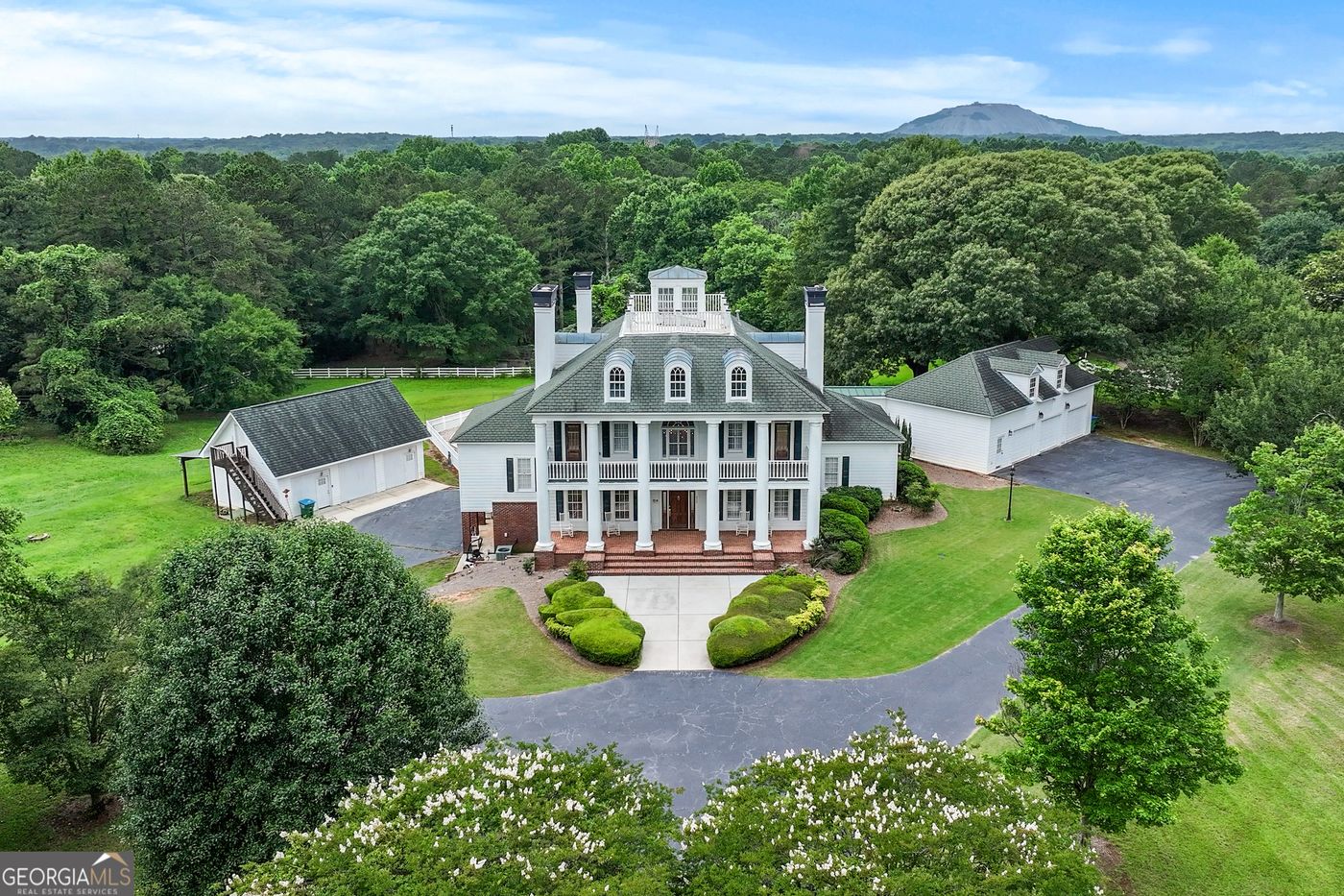 Discover unparalleled luxury in this sprawling, gated, wooded estate set on 4.5 acres. Professionally landscaped. Offers beauty and privacy. This stunning residence boasts: extra large rooms with soaring 12 ft ceilings on the main, 10 ft ceilings upstairs and in the lower level, extensive millwork, huge opulent master ensuite on the main, sun-drenched chef's kitchen equipped with Viking cooktop and Asko dishwasher, granite counters and oak cabinets. Sunroom overlooks stunning pebble tec pool with a waterfall and a private treed backyard. Upstairs has a second master ensuite plus two additional oversized bedrooms with a built in desks and two baths with double vanities. Tons of flex space on the lower level with exercise equipment and billiard table. Easy build out for 5th bedroom. Also on the property is a completely private 900 square foot guest cottage with a separate detached garage. Other features include well-fed irrigation system, Anderson windows and doors, thermostatically controlled greenhouse, temperature controlled garages. Convenient to Hwy 78, schools, churches, dining, Stone Mountain, Smoke Rise Country Club and unlimited sports organizations.