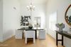 Upon entry, you'll find a dedicated office space, a rare feature in this floor plan, adding valuable flexibility. The interior boasts brand-new European white oak wood flooring, custom wooden shutters, and a thoughtfully designed layout with both formal dining and living areas.