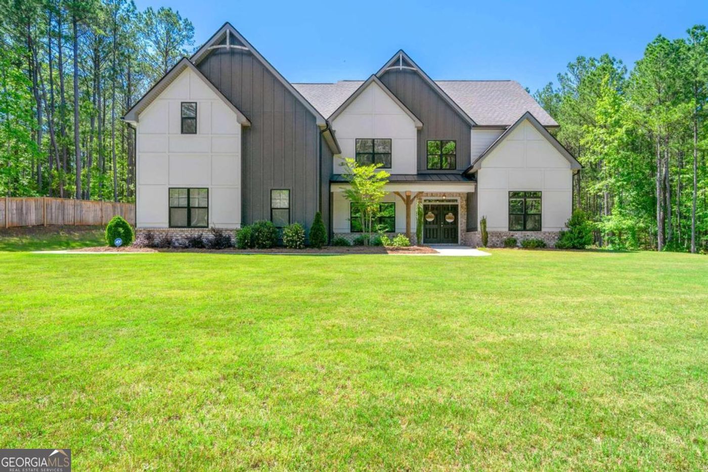 Experience the ultimate in privacy and serenity with this stunning 5,400 sq ft residence, set on 5 lush acres in picturesque Senoia. Less than two years old, this nearly new Jeff Lindsey Jordan "F" plan home offers a refined retreat from city life, while keeping you just close enough to all the amenities you need. As you step through the elegant double-door entrance, you're welcomed into a grand foyer, setting the tone for the home's sophisticated design. To the left, an inviting office offers a quiet workspace, and to the right, an oversized dining room showcases a unique coffered ceiling and refined wainscoting. The main living areas are adorned with light-toned Shaw LVP flooring, bringing warmth and elegance that complements the home's airy, open feel. In the great room, a two-story back wall with double-stacked windows fills the space with natural light, creating a bright and inviting atmosphere. Connected seamlessly to the great room is a chef's dream kitchen, outfitted with high-end appliances including a double oven, cooktop with decorative vent hood, custom tile backsplash, farmhouse sink, whisper-quiet dishwasher, built-in microwave, and a sleek refrigerator-everything you need to host and entertain in style. The primary suite on the main level is a haven of luxury, featuring a spa-inspired bath complete with a soaking tub, spacious shower, expansive double vanity, and an oversized walk-in closet. Upstairs, three generously sized bedrooms, including one ensuite, offer comfort and flexibility for family or guests. The third-floor bonus room spans 832 sq ft, with endless possibilities for use as a media room, teen suite, game room, or a private living area, complete with its own bath and closet. Outside, the covered patio provides an ideal space for al fresco dining, gatherings, or a peaceful moment to unwind, surrounded by beautifully landscaped grounds and level lawns in both the front and back. Don't miss the chance to own this remarkable home in scenic Senoia, where luxury meets tranquility. Schedule your private tour today to experience this exquisite property firsthand.
