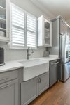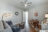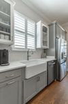 . The charming exterior sets this tone a part from others in the neighborhood — a gas lantern glows beneath an arched front porch, leading to an impressive 8-foot entry door. Inside, 10-foot ceilings create a bright, airy feel, while the foyer opens gracefully with arched transitions to both the dining/flex room and the main living area.