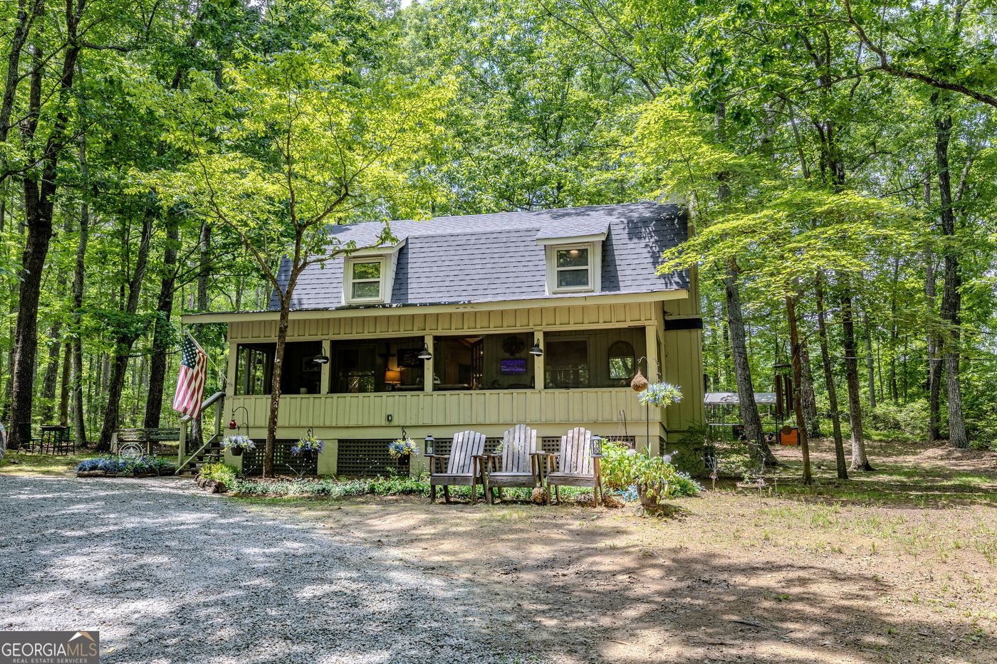 Lovely bungalo tucked in a secluded glade atop Lookout Mountain in Cloudland, GA.Recently completely remodeled with 2 new baths, wooden flooring, painted inside and out, new roof 2023 and rescreened front porch. The downstairs consists of kitchen with all appliances included, large shady front porch running the length of the house looking out over lightly wooded yard on a quite street, large living room with floor to ceiling mountain rock wood burning rock fireplace with inside wood box and trap to clean ashes caught in bin upon cleaning. The newly remodeled downstairs bath boasts large GE 4.8 cubic foot washer and dryer and tub and shower with vanity. The upsrtairs consists of 2 bedrooms with master adjacent to remodeled half bath. The second bedroom is perfect for children or guests with single beds or an efficient office space with 2 closets. New lattice work has been added to the exterior of the house as well as having just been painted. Three new central heat and air splits have just been installed, two 18000 and one 9000 BTU. All electrical has just been rewired including GFCI outlets, all new plumbing installed, new cast iron fire pit complete with genuine adirondack chairs, and 2 large screen televisions are selling with the home. Selling completely furnished, including silverware, china and firepit, this house is move in ready. The furnishings include many antiques and comfortable seating pieces for a cozy retreat. A graceful circular driveway provides ample parking and easy access into the home. The yard is equipped with electric fence for dogs and is nestled in the middle of 1.13 lightly wooded acres providing ample shade and privacy yet being within a mile of the flashing light at top of mountain in Cloudland. This is a wonderful opportunity to join the Cloudland community where there is a wonderful sense family with old world charm. The house is within 3 miles from Menlo Ga where there is a grocery store with deli, post office, diner, hardware store, feed store and gas staion. There is ample room on the lot for expansion if you desire a master on the main. Combo lock on front door provided. Don't miss this opportunity for the perfect weekend or permanent home high above the clouds in beautiful Cloudland, GA Shown by appointment only.