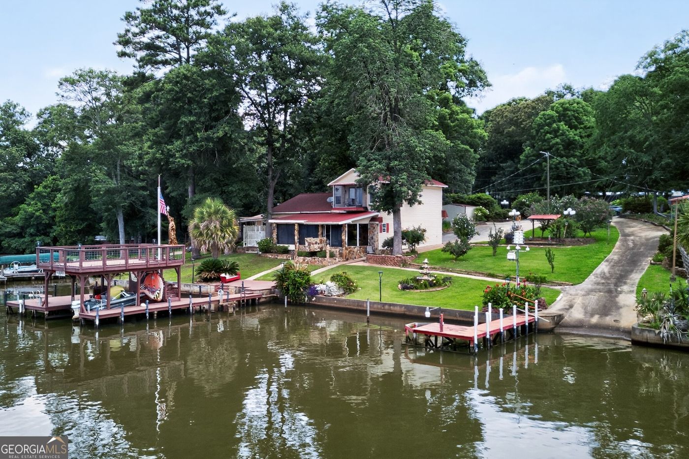 If you have been looking for your dream lake home well look no further, because you have found it with this absolutely gorgeous fully redesigned and renovated Lake Sinclair retreat! This beautiful home features all new LVP flooring throughout, a brand new high efficiency HVAC system, marble countertops, all new bathroom fixtures with new vanities, marble showers in two of the bathrooms, a brand new roof, a new septic system, and many many more extras. The spacious kitchen is ideal for entertaining friends and family, and the wet bar right off of the living room is perfect for unwinding after a fun day out on the lake. The .51 acre lot offers a breathtaking view of the lake that is truly a must see! The property has 105 feet of shoreline frontage, and a brand new dock was just installed with 10+ feet deep water at the end. This home is truly upscale lake living at its finest, so call today before this rare opportunity is gone!