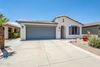 WATERFRONT and move-in ready home in Ventana Lakes in Sun City. Featuring vaulted ceilings and wood floors throughout, the spacious open layout is ideal for entertaining. Updated kitchen with quartz counters opens to the dining & living room with fireplace. Separate den is perfect for an office or just relaxing. Split floor plan offers privacy with both bedrooms boasting an ensuite. Primary has a walk-in closet & cozy covered patio with private entry. Laundry room with cabinets & 2 car garage with plenty of built-in storage, sink & side-door. Sit and enJOY the water view from your lakeside oasis offering two covered patios, mature desert landscaping, & direct access to walking paths & waterfront. The 55+ community of Ventana Lakes offers four pools, spas, fitness center, tennis & pickle- ball courts, bocce ball & horseshoes, a clubhouse & library, plus a variety of social activities. Stroll around the lakes, explore non-motorized boating, or try your luck at catch & release fishing. Quick & easy commute to the 101 & 303.
