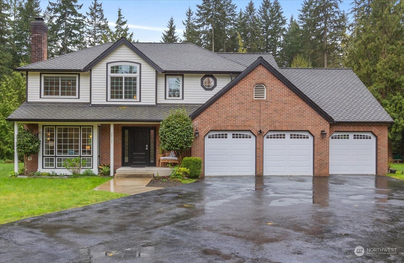 Beautifully remodeled 4 bedroom home tucked at the end of a quiet cul-de-sac on 2.8 private acres. Inviting entry w/wide plank white oak floors, large gathering spaces & cozy fireplaces to enjoy. Stunning kitchen w/Bosch appliance package, huge granite island, pantry w/built-ins and French doors leading to the expansive Trex deck for seamless indoor/outdoor entertaining. You won't want to leave the primary suite w/automatic blackout shade, spa-like bathroom and walk-in with closet system. The large bonus room with Juliette balcony is the perfect escape for play or work. Updates include new furnace, A/C, hot water tank & Andersen windows. Tons of storage with a 3-car garage & room for an RV/boat. Award winning Northshore schools & no HOA!