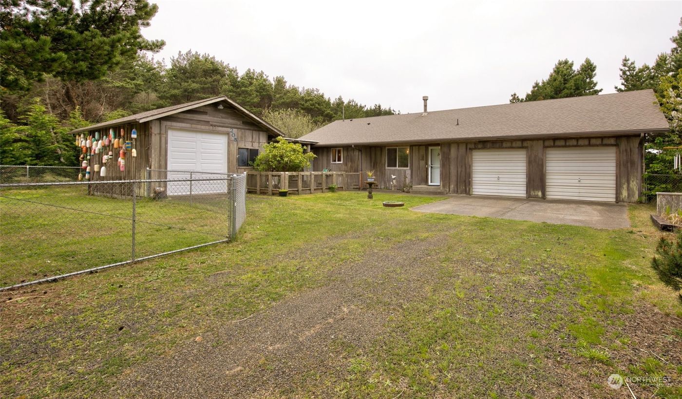 Hear the roar of the ocean and smell the salt air from this quintessential beach house which lives like a year-round home. Some of its recent upgrades include a sumptuous, spa-like primary bathroom, luxury vinyl plank flooring, water softener, new windows, and interior paint. Home boasts a wonderful floor plan with the living room separating the bedrooms for privacy. Wood burning fireplace is nicely situated to keep everyone warm. Washer/dryer neatly tucked into a kitchen closet. Shop is attached to the home by a breezeway. Fenced, flat yard. Best of all: beach access for clamming, kite flying, beachcombing, and a bonfire. Attached garage has a sink for cleaning your limits of clams. This property has been proudly maintained and it shows!