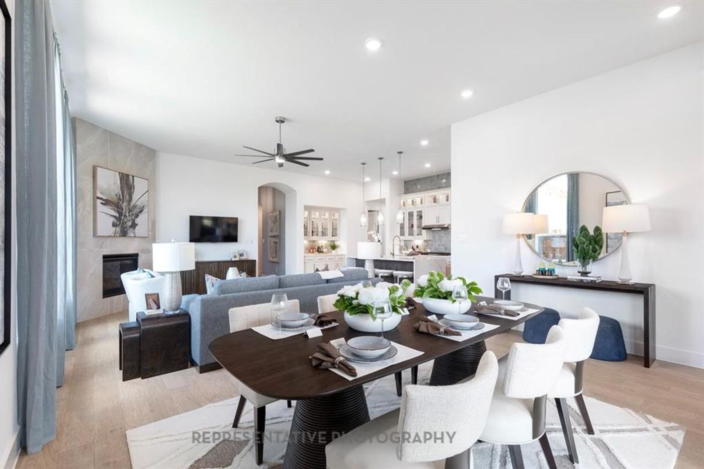 CalculateWelcome to the beautiful community of Grand Central Park! This open design welcomes you in with its large living area, corner fireplace, high ceilings and wood look plank floors, overlooking a covered rear patio and private fully fenced/sodded rear yard with no rear neighbors! You will enjoy cooking and entertaining friends and family in the huge Kitchen with built-in desk/command center, double ovens with 36 in gas cooktop with updraft vent hood plus built-in cabinets/buffet at the spacious dining room. Three different sleeping areas. Private secondary bedrooms with 2 bedrooms connecting with a shared bath. The fourth bedroom also features a private bath. The Owner's Retreat features a super shower and a huge walk-in closet. Working from home is ideal with a private study. Well appointed home, a must see!