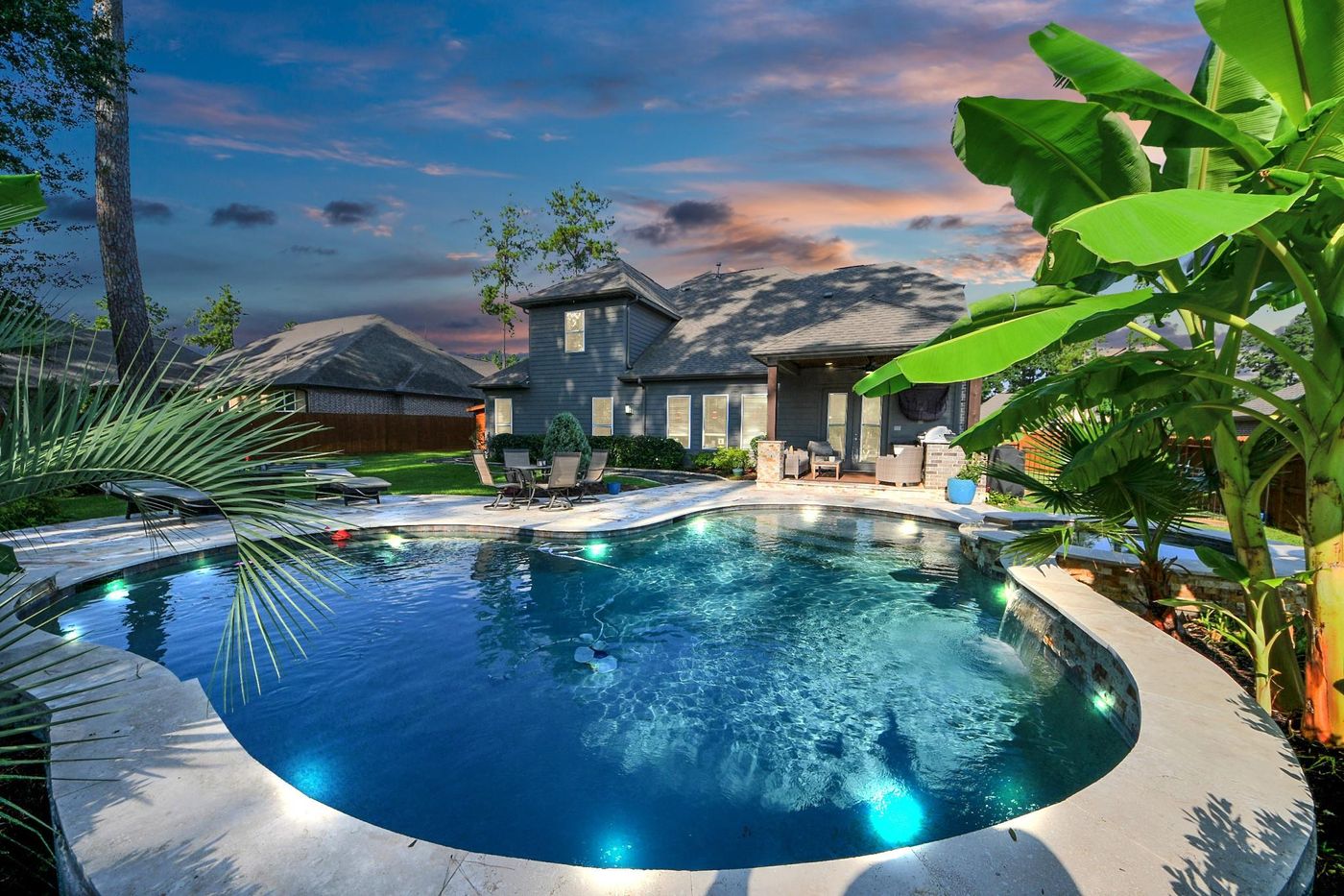 CalculateIncredible Opportunity! Spectacular Hamptons-inspired home by TIPLER Design and Build in the luxury, gated golf community of Pine Island at Woodforest! This is the private residence of the builder that has been upgraded with stunning finishes and beautiful details throughout. The backyard features Your Very Own Oasis with a pool, hot tub, Cabana & Summer Kitchen! Every detail has been paid attention too. Located in the award-winning master planned community, this unique custom design will feature soaring ceilings throughout, hardwood floors, gourmet appliances, custom designed lighting, an expansive outdoor covered patio. 4 bedrooms all with their own private baths, feature custom detailing & tremendous natural light. Those select features, along with a host of community-wide amenities throughout Woodforest make this a complete home & destination for years to come! Minutes from shopping and new restaurants! Short Golf Cart ride to Golf Club & Dining. GOLF CART FRIENDLY NEIGHBORHOOD!