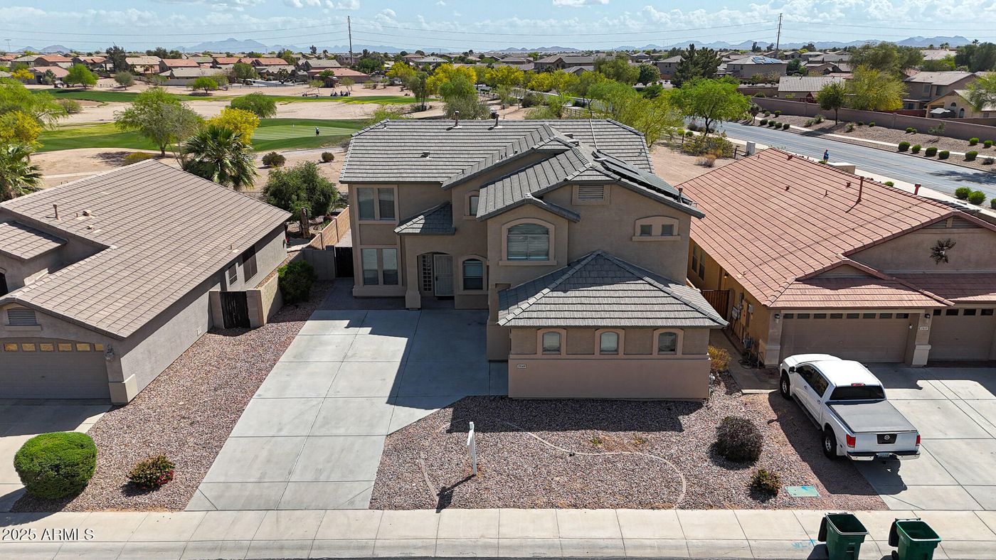 CalculateWelcome Home!!! This gorgeous 4 bedroom 2.5 bath home at the desirable Homestead North in Maricopa is in a fantastic location. Close to restaurants, shopping, schools, parks, as well as golfing at the Duke Golf Course & access to the Copper Sky Recreation Center. You'll love the layout of this two story home. As soon as you enter this home you can see the pride of ownership with all that has been done. Your spacious kitchen offer granite counter tops, an island/breakfast bar for extra prep & storage, stainless steel appliances, full height tiled backsplashes, filtered water, a walk in pantry & stunning crown molding cabinetry. Your spacious upstairs master bedroom offers a plethora of natural light, a walk in closet, dual vanity, a walk in shower & soaking tub to enjoy, as well as direct access to your large balcony. This two story home also offers upgraded ceiling fans & lighting, a wet bar, a gas fireplace with mantle in the family room, an office/den to utilize, a large loft area with direct access to your covered balcony, a 3 car garage with a water softener, as well as a backyard built for entertaining. Your backyard offers a large covered patio, an extended pergola (new 2025), a built in bbq, extended travertine flooring, artificial grass with mature landscaping & a view fence that looks out onto the frisbee golf course.