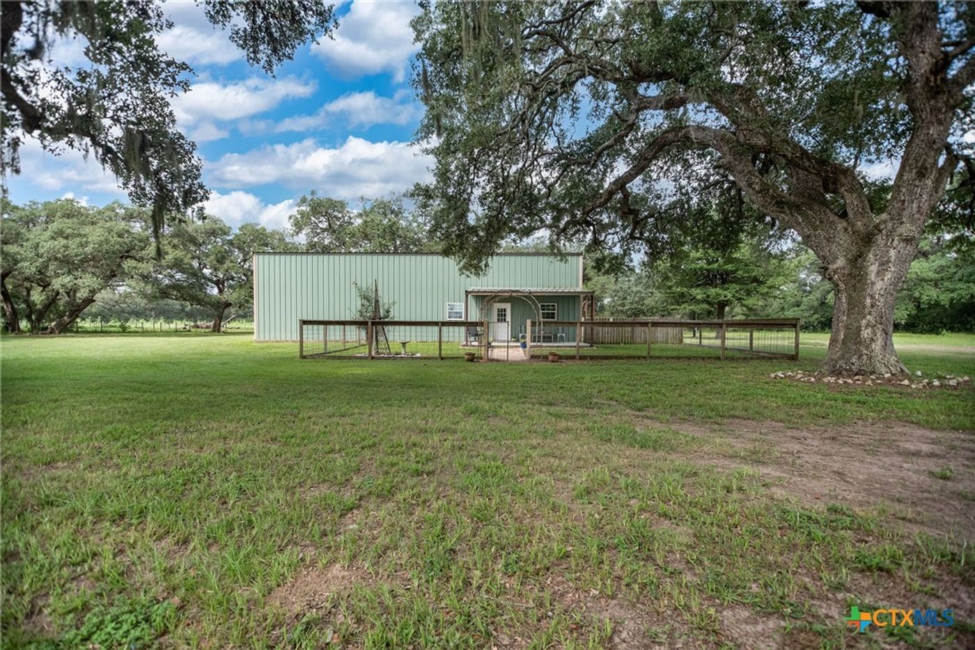 CalculateThis exceptional 14+/- acre ranchette features a beautifully designed 1,820 sq ft barndominium nestled among majestic mature oak trees. Built only 7 yrs. ago, this unique property offers the perfect blend of modern comfort & rustic charm, ideal for those seeking a peaceful country lifestyle. The thoughtfully designed barndo boasts 2 spacious bedrooms & 2 full baths. The open concept design maximizes every square ft creating a warm & inviting atmosphere. A substantial 850 sq. ft lean-to provides endless possibilities for hobbyists, craftsmen, or those needing extra storage & workspace. The shop area can easily be converted to additional living space if desired. Working pens w/ chute enable efficient cattle handling. A 4-stall horse barn provides excellent equestrian facilities. This remarkable property offers turn-key agricultural operations w/ elegant barndo living. Call today!