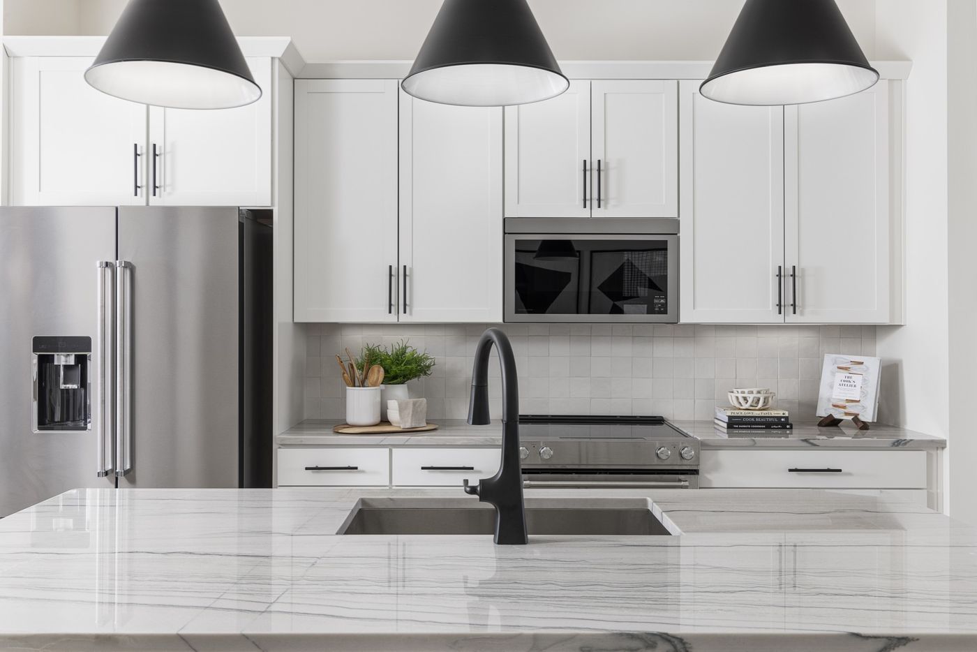 CalculateLot #20 - Haggard. Blending modern style and comfort, this new three-story townhome comes with a sprawling rooftop terrace for outdoor entertainment and leisure. Right off the foyer is a practical study for remote work, while upstairs is the open-concept main living area. It includes a sophisticated family room with a fireplace, a chef-ready kitchen with an oversized center island and dining area. Residing on the third floor are two bedrooms and a serene owner’s suite with a private bathroom. *Images are rendered. Actual configuration and features may vary.