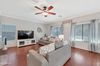 Upon entry, you'll find a formal living and dining area, perfect for hosting guests. The great room is expansive, and the large, upgraded kitchen is a true highlight, featuring stunning granite countertops, a large island, stainless steel appliances, and a double oven with a gas cooktop. The kitchen seamlessly flows into the large family room, with a cozy gas fireplace—ideal for relaxing.