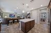 The kitchen, refreshed in May 2023, is the heart of the home with a large center island, quartz countertops, stainless steel appliances including a wall oven and gas cooktop, tiled backsplash, workstation, and a walk-in pantry. The open-concept design connects the kitchen to the living space, creating a perfect gathering place.