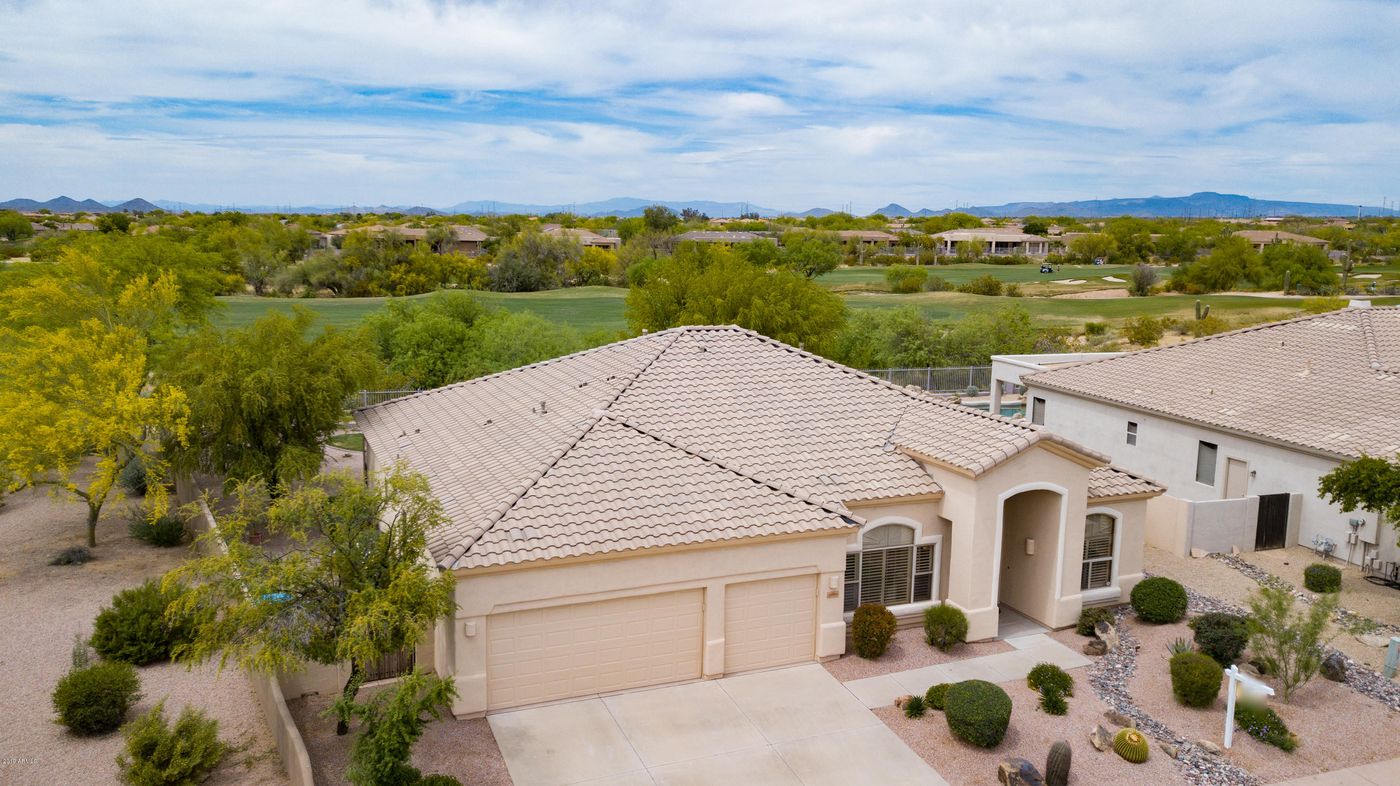 Hard to find single story on the Wildfire Golf Course/Desert Ridge. Lot (over 1/4 acre)backs to 17th Fairway.This outstanding model (2670 sq, ft.) features a spacious formal living & dining room,office with built-ins,3 bedrooms[SPLIT FLOORPLAN]. Spacious Family room (gas fireplace) near Powder Room. Family sized kitchen with breakfast nook and bar stool spaces on island.Appliances replaced in 2015. Master Suite with bay window, separate shower/tub/water closet. 3-car garage with access to Laundry room (space for freezer or ...use your imagination). The huge back yard provides grassy area, covered patio (ceiling fan/TV) and a golf course view. Security screen doors front/patio.New 2015:A/C,Water Softener & Heater: 2017 Roof,Exteior Paint. Move-in ready - Desert Ridge is the place to be!