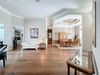 The 2nd and 3rd bedrooms are equipped with ceiling fans, and the newly updated (2023) Jack and Jill bathroom layout adds flexibility. The 4th bedroom renovated in (2018), currently used as an office, features a Murphy bed and built-in desk, offering versatility for work or guests. Throughout the common areas, large, engineered wood planks add warmth and elegance. The home also includes a separate formal dining room located off the kitchen and foyer, a formal living area with access and views to the pool, and a spacious family room complete with built-ins, a fireplace, and more pool access.