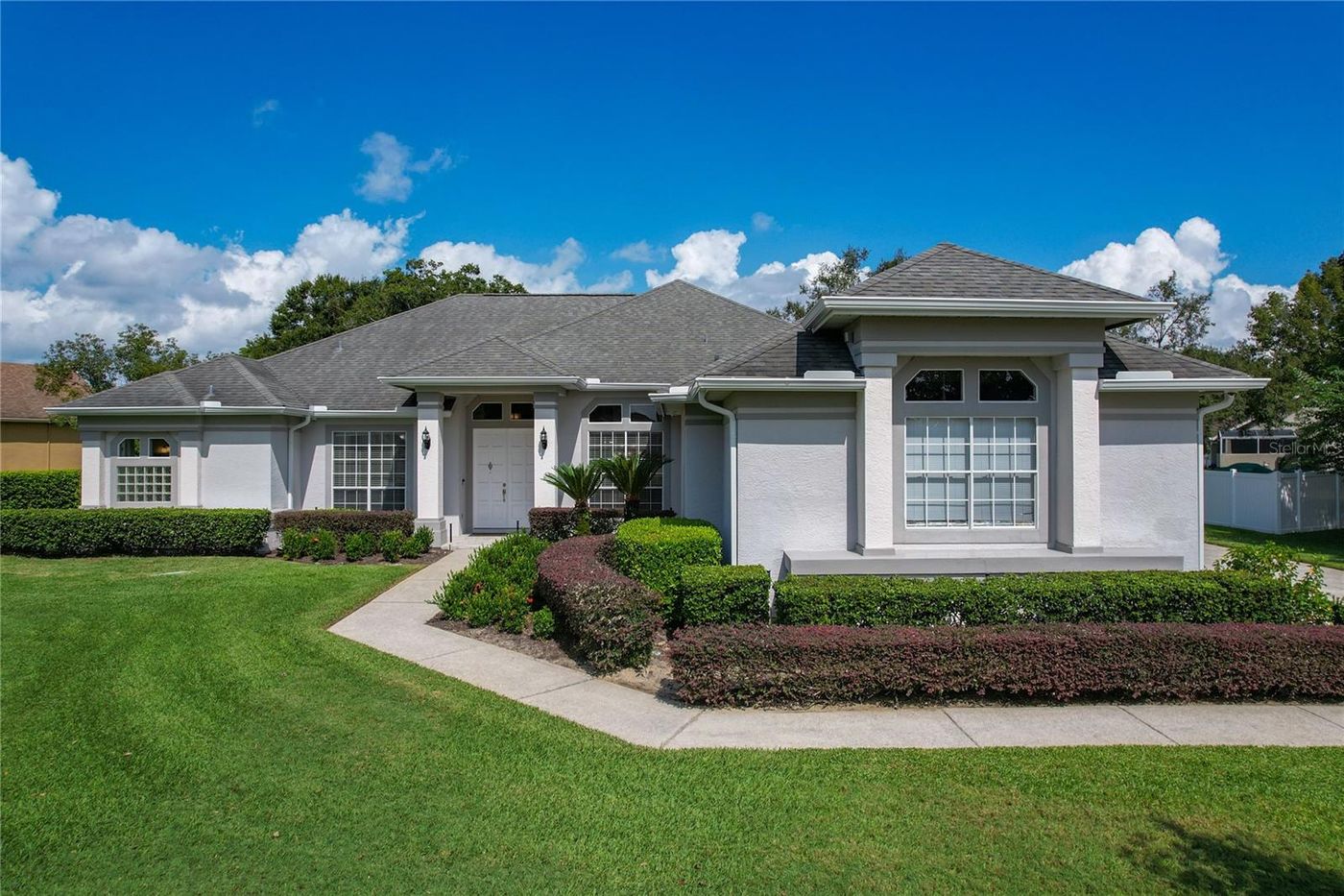 This elegant, one-story pool home sits on an expansive 0.58-acre lot, one of the largest in the desirable Courtleigh Park community. With generous homesites from a quarter to over half an acre, this peaceful, tree-lined neighborhood offers both tranquility and space. This bright and airy home recently repainted in 2023 boasting over 2,600 sq. ft. of living space, featuring 4 bedrooms and 3 full bathrooms with a smart, functional layout featuring Bluetooth surround sound and intercom system throughout the home, and wired for surveillance.