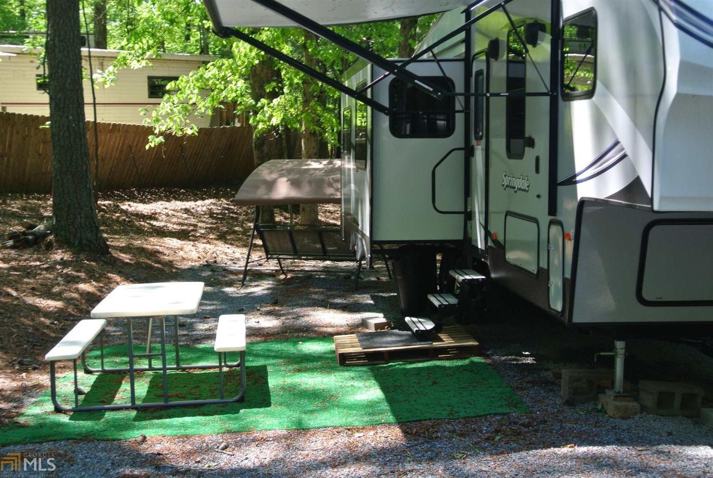 2017 SPRINGDALE 34 foot 5th-wheel in EXCELLENT condition. This beautiful camper has THREE (3) SLIDES for tons of room the stretch out. Electric fireplace, electric awing, standard camper refrigerator, double sink, kitchen island, sleeps 4.Sitting on a great wooded lot. Outdoor furniture. This is just what you need for a great getaway in a gated community that offers amenities such as community pool, clubhouse, river access, tennis, walking trails. Check out this great RV and start enjoying the camper life in the N GA Mountains!!