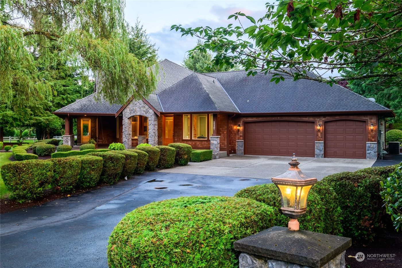 This one-of-a-kind Grand Ranch rambler on 1.68 acres, includes Guest Cottage/ADU, a 30x50 detached shop w/RV door, bathroom, upper loft, and attached 12X50 carport. This 4-bedroom luxurious home features a massive entry, covered porch, open-concept interior, dedicated office, dining room, sitting room, and laundry w/ ample cabinets. Ensuite Primary boasts a huge walk-in closet. 1/2-story spacious bedroom offers a full bath & giant closet. Beautiful finishes inside, park-like maintained grounds w/ two water features. One-bedroom Guest Cottage offers a 3/4 bath, partial kitchen, gas fireplace, & vaulted ceilings. Full RV hookup. Sprinkler system w/ irrigation Well for affordable lawn care. Perfect for multifamily living. Fresh exterior paint!