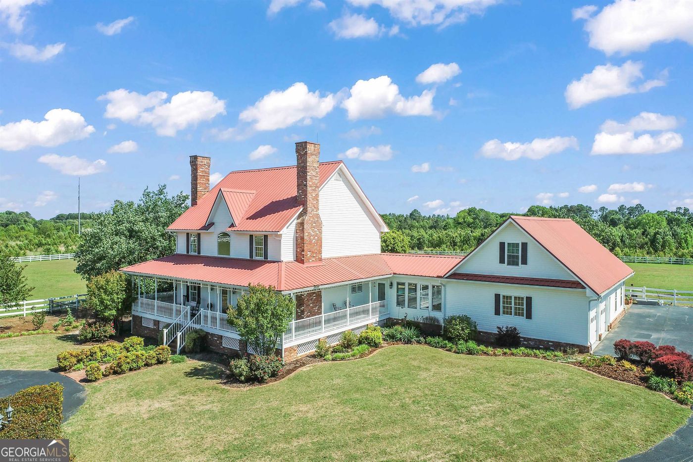 You must see this incredible custom-built estate home that is gated and sits on fenced lot with scenic, peaceful views! This is a true Southern Living dream home out in a country oasis but not too far from the city. It has incredible scenic views from all areas of the property. The homesite sits in the middle of the property down a long tree-lined driveway. Once you arrive the farmhouse-style home has a huge wrap-around porch ready for rocking-chair relaxing. The interior of the main portion of the house is traditional with intricate craftsmanship and has a two-story foyer, dining room with fireplace, and an executive office that connects to a full bathroom. The main living area is open with unobstructed access to the kitchen with a massive entertainment-style island. The master suite is spacious with a stunning remodeled en suite and private laundry room. The second floor features two spacious suite-style bedrooms with private updated bathrooms and huge closets. The upstairs bedrooms share a secondary laundry room. The primary living quarters connect to a secondary living, entertainment area, and garage. As you pass through the sunroom the lavish outdoor resort-style backyard glows. The oversized saltwater in-ground heated pool has a huge entertainment area around it and features a spill-over spa, sundeck, cool decking, covered porch, brick and stone accents, and upscale landscaping throughout. On the west wing of the property, you will find a full in-law or teen suite. It has two full bathrooms a kitchenette, a third laundry room, and a huge entertainment/game room. The garage is oversized and has a charging station, workshop area, and a huge parking pad beside it. Additional features include two backup propane generators and a quaint water pond for koi or small fish. The property has a multitude of possibilities to add additional homes, barns, workshops, RV parking, or re-zone and subdivide to maximize future opportunities. This is a dream home and the current owners have significantly upgraded and updated the home over the years. Water/Septic already ran for future owner to build a barn. It truly has too many features to mention. Appointment only. Call listing broker to discuss any details.