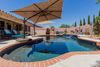 CalculateBeautiful home with POOL & MOUNTAIN VIEWS in Pinnacle Hills! Displaying a 3-car garage & a mature landscape. The fabulous interior features plantation shutters, vaulted ceilings, designer paint, tons of natural light, recessed lighting, and new floors. Discover a combined living & dining room w/bay window, as well as a secondary living area! The impressive kitchen boasts SS appliances, quartz counters, ample wood cabinetry, a pantry, a butcher block island, peninsulas w/breakfast bar, and a cozy nook. Double-door large main bedroom has outdoor access and an ensuite with dual sinks, separate tub/shower, & a walk-in closet. Enjoy the spacious backyard oasis with a covered patio, built-in BBQ, artificial turf, fire pit, & a refreshing pool! Just WOW!