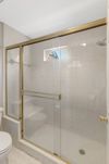Your spacious primary suite offers comfort and style, featuring a custom built-in closet and a walk-in shower.