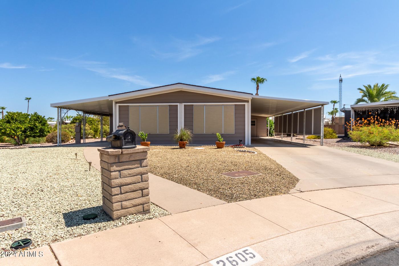 55+ buyers looking for a true move in ready home on an oversized cul de sac lot...we have it! Remodeled throughout. New roof & awnings, new interior & exterior paint, new flooring, new vanities in both bathrooms, brand new stainless steel appliances, granite composite sink, new hardware & new ceiling fans. Open floorplan with tons of space for entertaining inside or out. En suite master bathroom with linen & storage cabinets. Master bedroom has walk-in closet. Inside laundry room has large counter space & cabinets on both sides for ample storage. Spacious Arizona room is ideal for our moderate winters. Also 2 additional patios. Great storage shed/workshop. Fruit trees on property. Low maintenance yard for an easy lock & leave. Something for everyone is this active & friendly community. Clubhouse, restaurant/bar, large fitness center, pickleball courts, heated pool and spa, billiard room, arts/crafts/quilting, wood shop, library & even a church within the community. All this for an extremely low HOA of only $74.00/month that includes 2x a week trash pick-up. Great location with easy access to both Sky Harbor Airport & Mesa Gateway. Shopping, multiple private & public golf courses, restaurants, lakes, Salt River, Saguaro Lake & hiking all close by.
