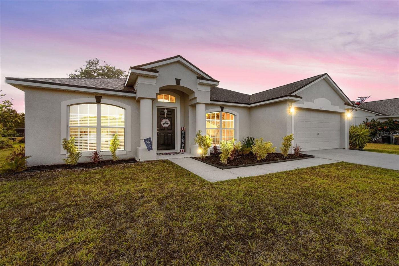 Step into luxurious canal-front living with this meticulously updated 4-bedroom, 2-bathroom haven. A full remodel in 2020 brought a modern touch to every corner, from the sleek kitchen to the spa-like primary bath. The addition of a Murphy bed in the office area maximizes space and functionality. Recent upgrades include new appliances in 2022, a new roof in 2020, and a new outside AC unit in 2023, ensuring both style and reliability. Inside, the soaring ceilings and open floor plan create an inviting atmosphere, perfect for entertaining or quiet nights in. The expansive kitchen boasts stainless steel appliances, a closet pantry, and a breakfast bar overlooking the family room. Retreat to the oversized primary suite with its own private bath featuring dual sinks and a shower/bath combo. Outside, enjoy the tranquility of a cul-de-sac street and golf course views from the front, or unwind on the covered patio overlooking the serene canal in the expansive backyard. NO HOA ensures freedom and flexibility, while being priced below appraised amount offers exceptional value. Located near the community park and clubhouse, and just a short drive from the beach and theme parks, this home offers the perfect blend of comfort, convenience, and luxury. Move-in ready and waiting for you to call it home. Buyers to verify all measurements and information.