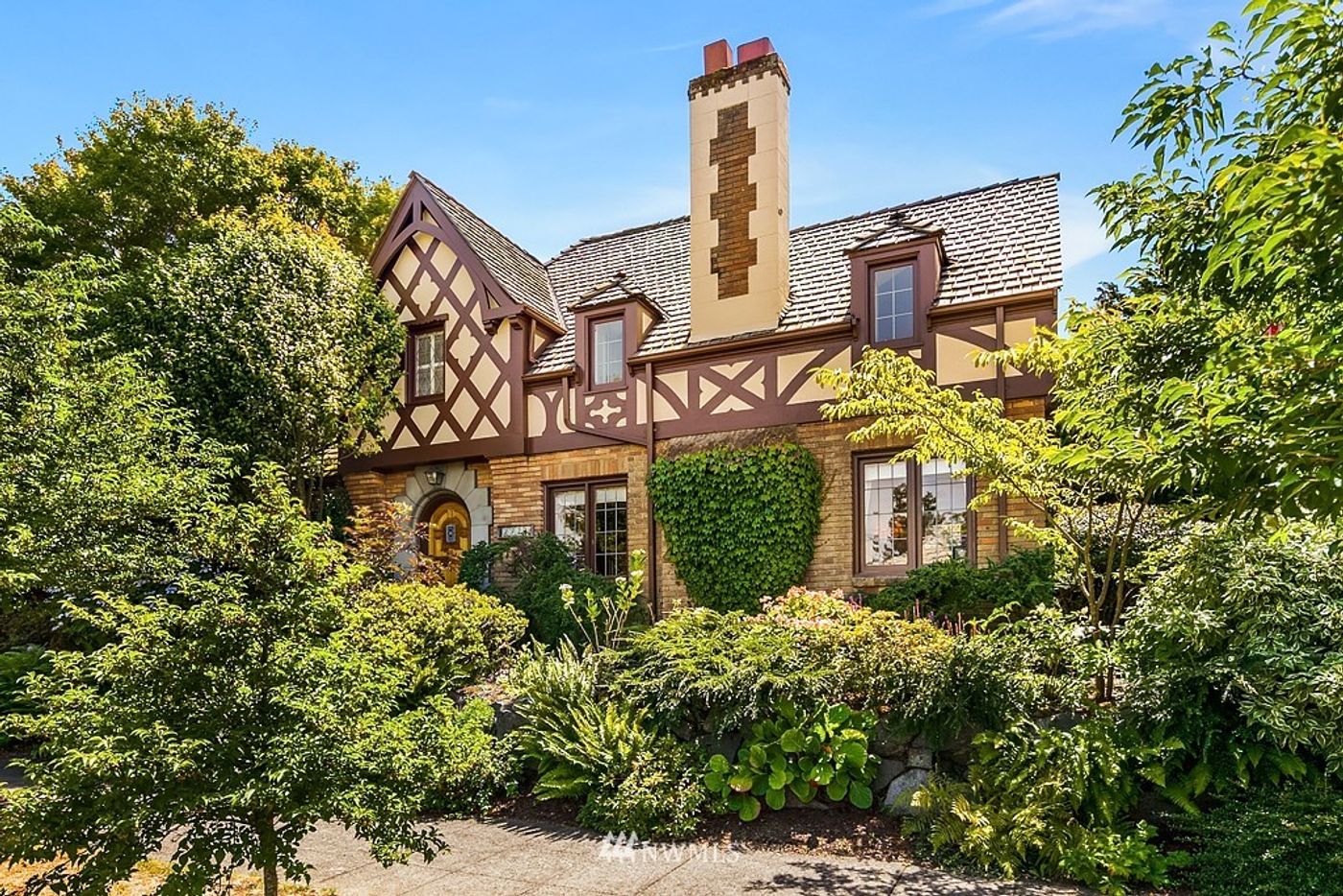 Storybook brick Tudor exudes grace & charm with classic period details set against lush gardens & colorful landscapes. Coved ceilings, mahogany millwork, leaded glass windows & exquisite tile fireplace provide timeless appeal while the custom cook's kitchen adds modern French flair with imported Parisian wallpaper, high-end S/S appliances, double ovens & granite counters. Main floor den, 3 beds up, a lower level rec room & multiple outdoor patios create a private oasis in the heart of Magnolia.