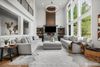 This luxurious home in the "Estates at Sugarloaf" features a grand foyer with soaring ceilings, leading to a formal dining area. Beautiful Gourmet chef’s kitchen offers ample space. The great room has a striking gas fireplace and a wall of windows for natural light. The main-level primary suite includes two walk-in closets, an extra laundry hookup, and a spa-inspired bath. This home features two more en-suite bedrooms with baths. Large Automatic Generator, RV parking and a covered patio with a Control4 smart home system for lights, TVs, and alarms. Outdoor amenities: sprinkler system, gas fireplace, speakers, electric heaters, and plumbed BBQ area. Custom fire pit and landscaped hot tub patio, NBA-sized court, Garage includes EV charging.