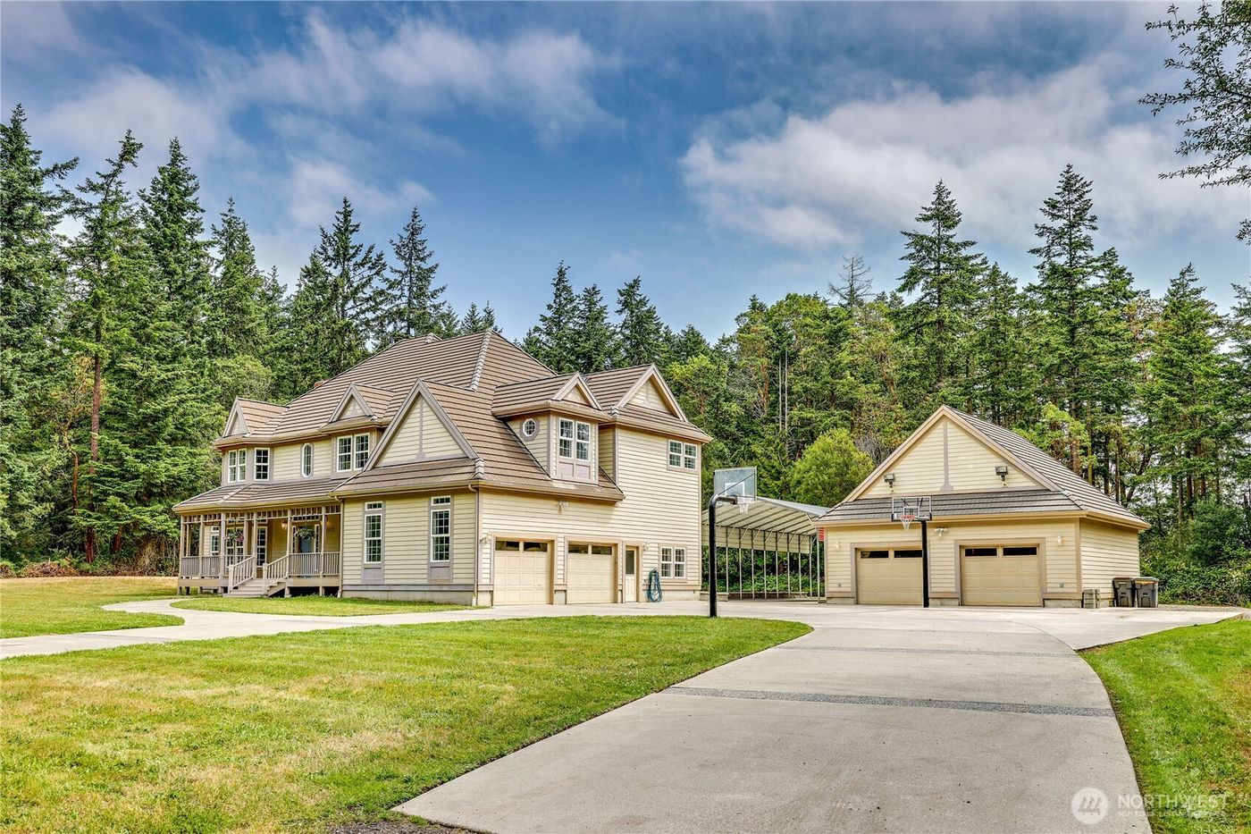 This remarkable property offers the rare combination of a stately ~4000 sq ft home + attached two-car garage + detached garage/shop on a shy acre lot just five mins from uptown Port Townsend. The home features a grand entry w/double staircase & inviting family room with vaulted ceiling & brick fireplace. The spacious kitchen has extensive workspace, new appliances, walk-in pantry & attached laundry room. Wonderful private primary bedroom suite. The floor plan has tremendous versatility, including home offices on both floors, multiple media room options & space for everyone's hobbies. Detached shop includes 900 sq ft of work area + walk-up attic. Paved covered parking for boat/RV/trailer. So much space, so much potential, so close to town!