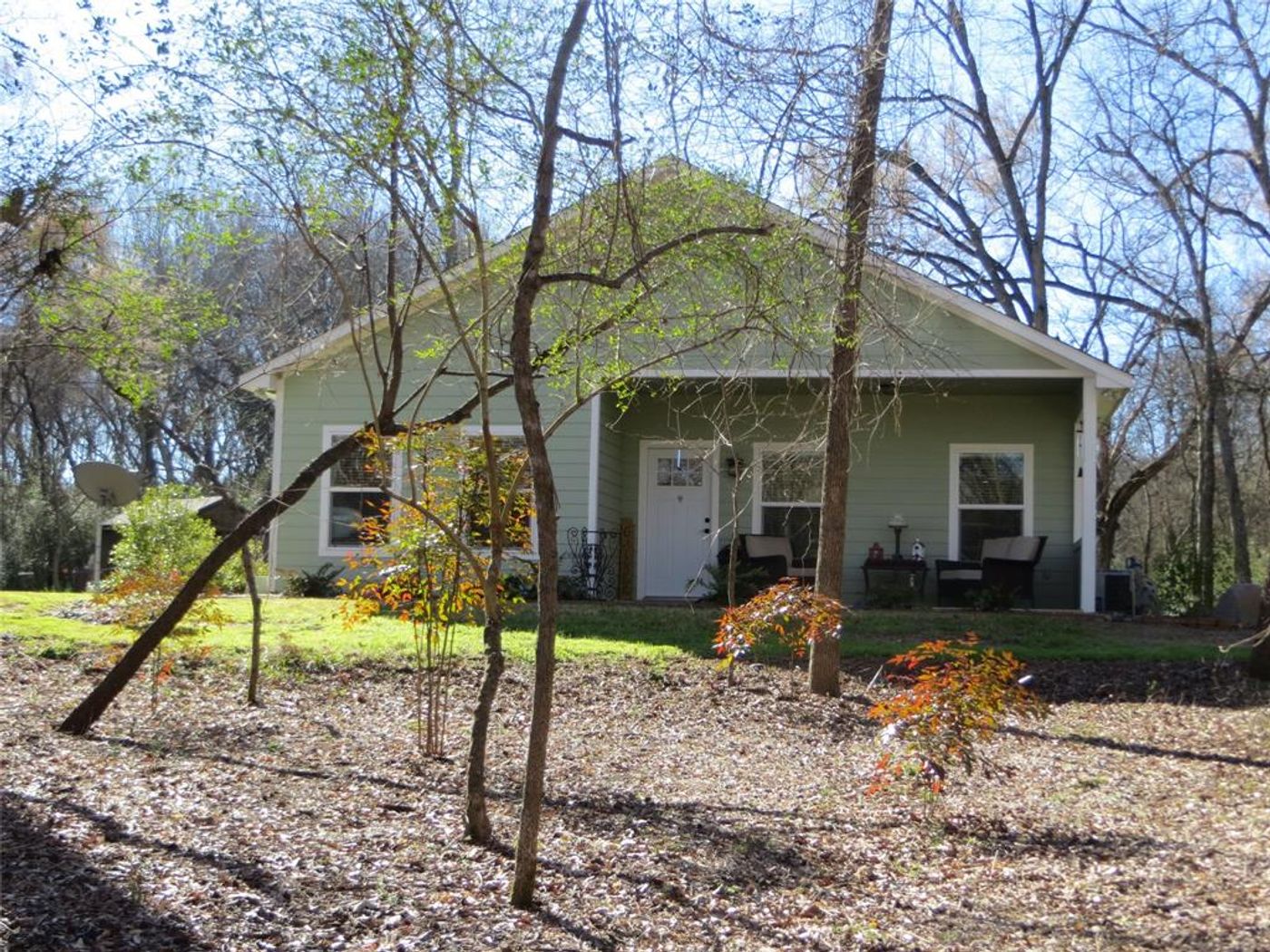 Surrounded by Nature! Follow the natural drive to this fabulous home in the woods-way back off the road. This home has 2 lrg bdrms-2 bath, hardi-plank siding, 9' clgs & huge kitchen & an abundance of cabs. In the over-sized island, are dishwasher connections. The livrm is at the rear where you can view wildlife & birds. For comfort, 2 layers of insulation are in the walls; the attic-radiant barrier & blown-in insulation. Covered RV pad with electric & water. Curvco Bldg w concrete floor, pull-through front & back roll-up doors-LED lights-bathrm. A storm cellar for safety. There are 6 freeze-proof H2O hydrants. This beautiful property will be your escape. Over 13 pecan trees, a few dogwoods & other trees.