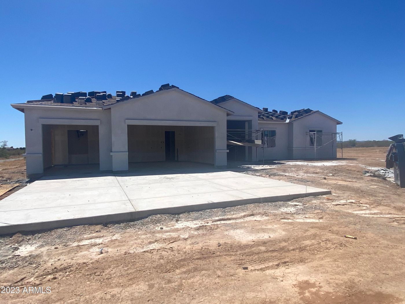 New construction, Alpine model, 3-car garage. Offers four bedrooms or three and a den/office. 2,138 sq. Ft. Est completion September 2023. Located just off Patton Rd, less than 5 miles to Grand, this one-acre flat lot offers a great place for horses or outdoor hobbies—plenty of room to build a separate RV garage and pool. Builder is building a total of four homes, all on 1-acre lots. Home faces East/West. Shared well. Within minutes to grocery store and restaurants (Sun City), New Fry's off 163rd Ave 15 minutes: 10' ceilings, tile plank flooring in main areas. No HOA.