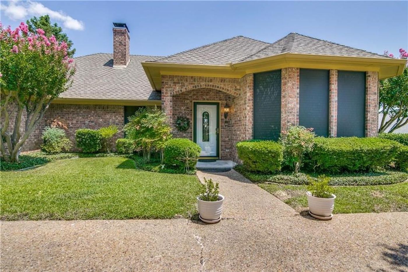 Lovely landscaping and convenient semi-circle drive welcomes guests and offer extra parking at this spacious home in Club Hill Estates! Features large Living Area with built-ins, recess lighting, cozy fireplace and rich wood flooring that stretches into the Formal dining w floor to ceiling windows. Counter + cabinet space offers tons of storage, + an island all w Granite countertops, decorative backsplash, updated lighting, fixtures, ceramic tile flooring, and large breakfast room w buffet cabinet built-in. Large Master with en-suite that includes dual sinks, Garden Tub, + separate shower. Fantastic covered, partially enclosed patio w ceiling fan looks out over backyard surrounded by Board on Board fence.