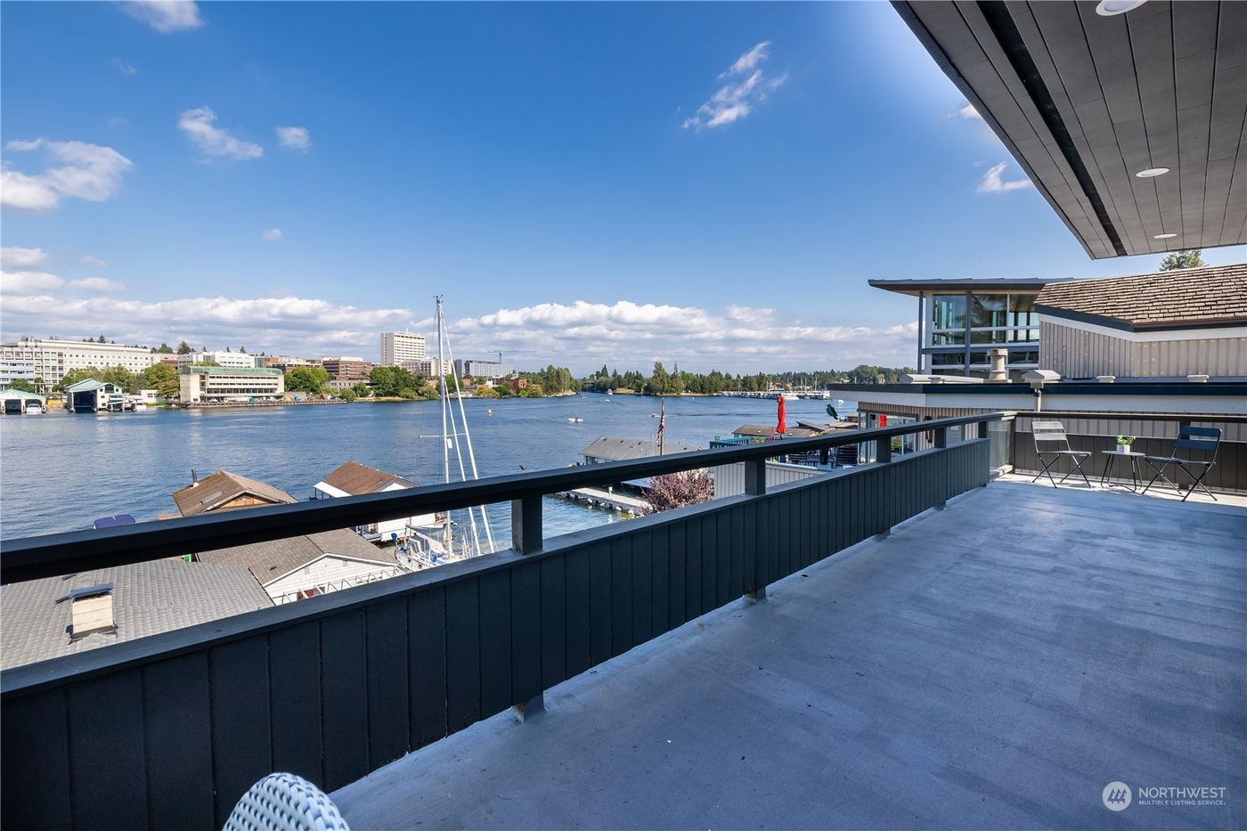 Gorgeous remodeled upper floor home in Portage Bay’s sought after sunny Gold Coast. Extremely rare waterfront co-op community with 2 covered parking spaces on site. The very best views of Portage Bay, UW, & the Cascades, + unique look through Montlake Cut for an endless boat parade. All newly refinished and ready to move right in, this home has room for it all plus an extra private office off the courtyard. Meander down the pathway & walk the 100 ft dock & marina. Swim or launch your kayak or SUP. Be part of an amazing historical water based community and enjoy life on vacation every day.