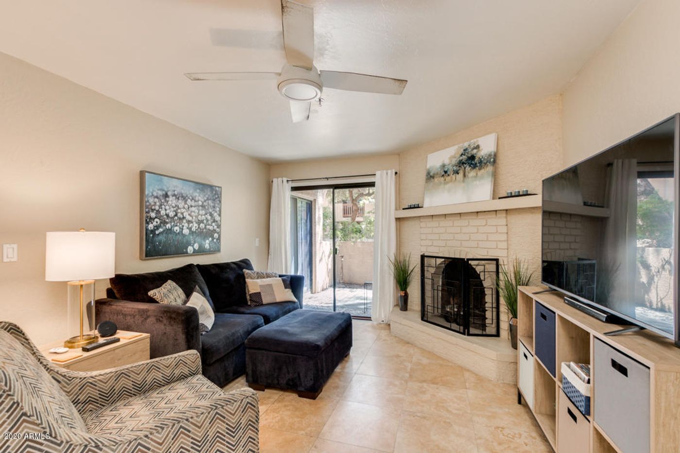 Welcome home to this amazing condo in the Heart of Scottsdale. Minutes from downtown, this one bedroom condo has been beautifully renovated and is ready for its new owner! Tile throughout the main living area, beautiful brick fireplace, and updated Kitchen and Bathroom. White cabinetry in kitchen, stainless steel appliances, 2 inch quartz countertops, breakfast bar, dining area and walk in pantry. Large area off the kitchen can be used for a formal dining or an office space. Master suite has double sinks, updated cabinetry, faucets and quartz countertops. 2 separate entries to the lower level covered patio.