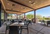 CalculateTucked within the gates of Anthem Country Club, this radiant home invites you to slow down, stretch out, and savor the beauty of desert living at its most refined. Positioned on a unique lot with no neighbor to the West and sweeping golf course views behind, Feather Sound offers privacy, serenity, and space to truly live. Inside, light pours through soaring ceilings and expansive glass, filling every corner with warm energy. From the moment you step through the rare, enclosed front courtyard- your own private garden sanctuary- you'll feel the difference. Life flows effortlessly here, with dual living areas, a sunlit library, and a wide open den that can flex with your needs. The heart of the home is anchored by a dramatic panoramic sliding door, opening fully to the lush outdoors and shaded by a remote-operated screen that transforms the patio into a breezy, inviting extension of your living space.