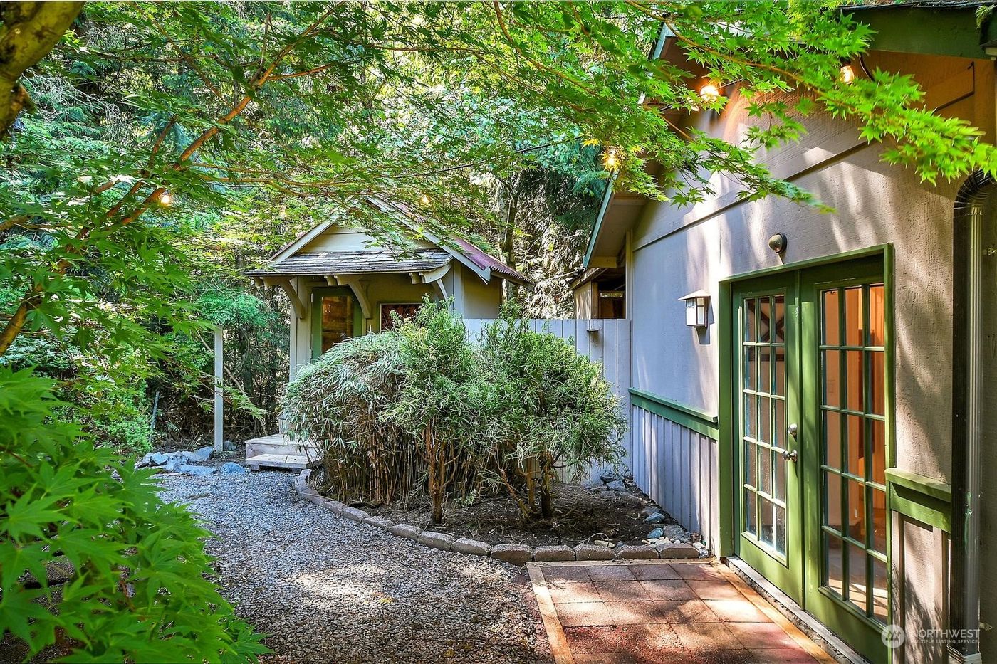 This unique property has it all: A well-maintained 3-bedroom home, on 1.35 beautiful acres, with an outbuilding for everything. Just 5 minutes from the bridge to Kitsap! Fresh, spacious home features living room with vaulted ceilings & large windows, roomy primary suite incl. walk-in closet, and open kitchen/dining area with oak cabinets, granite counters, & pantry. Double doors open to a sweet back deck for relaxing with hot tub & fire pit. Outside, a serene wooded setting offers privacy on all sides. Enjoy a sunny yard, 2-car garage, large shop, garden space, sauna, and covered boat/vehicle storage. Detached 15'x25' studio ideal for hobbies, fitness, & more. Mini-splits provide AC. New roof, paint & carpet. Minutes to beaches & Teal Lake!