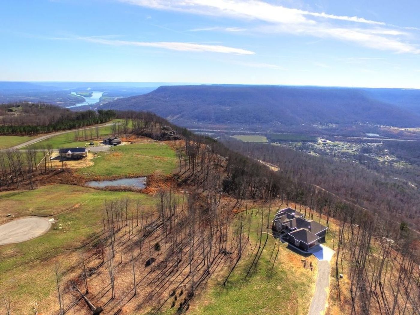 Stunning, modern contemporary mountain home is available to the most discerning buyer, located in the gated community of Jasper Highlands. One level home offers astonishing views on a Western brow setting of 4.99 acres, complete with brow vistas of a waterfall from the side deck & indoor pool. Not only do you have views of brilliant sunsets and the valley below, but unsurpassed craftsmanship and meticulous detail. Custom designed with split plan, master bedroom with his & hers walk-in closets and separate vanities in master bath. Two other bedrooms on opposite side of home, one currently used as an exercise room and a den/office is located on that side of the home as well and could serve as a 4th bedroom. What will really awe a buyer is the glassed pool pavilion room (34 X 22) with your very own leisure pool system--a heated plunge pool complete with jets. In winter, "soak" in the views while staying warm with your gas fireplace. The kitchen has an open dining experience and comes complete with commercial quality appliances including a GE 5-burner gas cook top with dual fuel and a prep sink and large pantry. Granite counter tops compliment the gourmet kitchen & bathrooms and are "well blended" in matching the pickled oak stained hardwoods. Ceilings are 10' tall with 8' doors throughout. Expansive windows adorn the home for a light & airy feeling and are high efficiency with sun shield on the West side.New blinds recently added for additional comfort. The home has 2 sealed gas "modern flame" fireplaces with radiant heat & remotes for adjusting the brightness of flames, one in great room & the other in master bedroom. The pool room's fireplace is gas & provides heat. Other features of the home include a 14 Seer HVAC, a Kohler generator, GeoSpring electric hybrid water heater, LED lighting, over-sized garage with pull down attic with extra floored storage & an 18' overhead door, totally encapsulated stand-up inside crawl space, insulated basement walls and 2 X 6 walls
