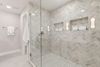 The master suite is a true retreat, showcasing a luxurious shower with intricate tilework and elegant fixtures that embody comfort and class. From the flooring beneath your feet to the fixtures above, every detail has been intentionally curated to create a warm, inviting, and high-end living experience.