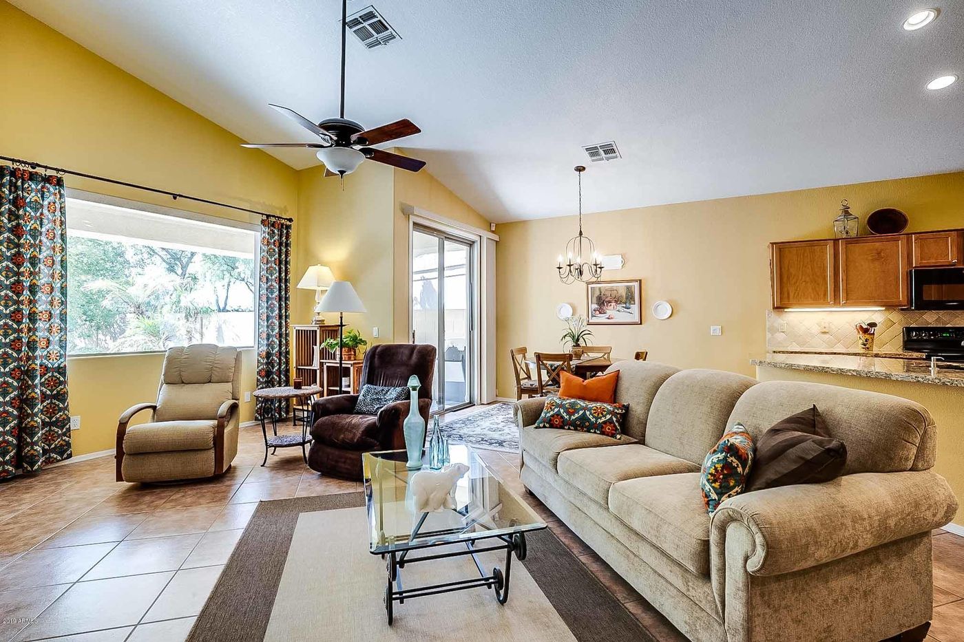Hurry to this 2 bedroom + Den, GOLF LOT home waiting for a lucky new buyer to call home! Nestled in the gated community of Ravenswood with spectacular Mountain & Golf views. Updated & lightly lived in. Enter through the gated courtyard to the spacious great room with soaring ceilings & neutral tile throughout. Gourmet kitchen with granite tops & newer appliances. Private backyard with extended covered patio, elevated seating spots & easy desert landscape to enjoy while overlooking The Raven Golf Course & South Mountain. Perfect entertaining home in & out! Friendly neighbors & centrally located. Be sure to check out the photos and document section for more great features and detailed on this home and area.