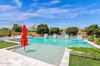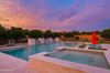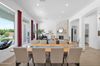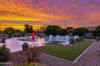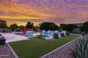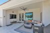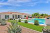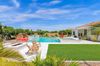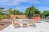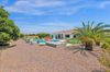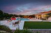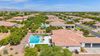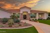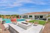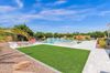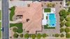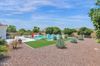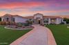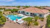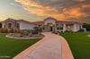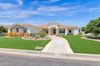 from formal living room with floor to ceiling brick gas fireplace, to large dining room, to gourmet kitchen with all the latest amenities including - 2 year old double ovens and appliances and tongue and groove/self closing cabinets. Everything a chef would want. Seating for four at a spacious quartz island is great for casual dining. The family room has a second floor to ceiling brick gas fireplace set between two built in bookcases. All rooms with 10-12 foot ceilings. Welcome to the perfect space for relaxing, family gatherings and entertaining. An additional office/bonus room/den offers flexibilty for your lifestyle needs. 5 total bedrooms - Retreat to the primary suite which stretches from front to the back of home with sitting area and private exit to patio, two walk in closets, large shower and soaker tub for ultimate relaxation. 3.5 total bathrooms and a 3 car garage with built in storage. Outdoor living is equally impressive on a sprawling 1/2 plus acre lot offering both privacy and elegance with mister lined covered patio that provides shaded space for outdoor dining and leisure. Over 1700 square feet of tumbled marble decking with built in fire pit and seating, resort style 35,000 gallon saltwater pool and integrated spa, a beautifully landscaped yard with room for kids and pets to run. Easy to care for artificial turf with 13 mature navel orange trees all maintained with low cost flood irrigation. RV gate ensures easy access for all your toys. Located close to the 202 freeway, residents enjoy easy access to all parts of the Phoenix metro area, including PHX Sky Harbor. With top rated schools and beautiful parks nearby, including the Mesa Tennis & Pickleball Center at Gene Autry Park, big league dreams, and Kensington Groves Park, this home is not just a residence but a lifestyle choice for those seeking the best in Mesa living.