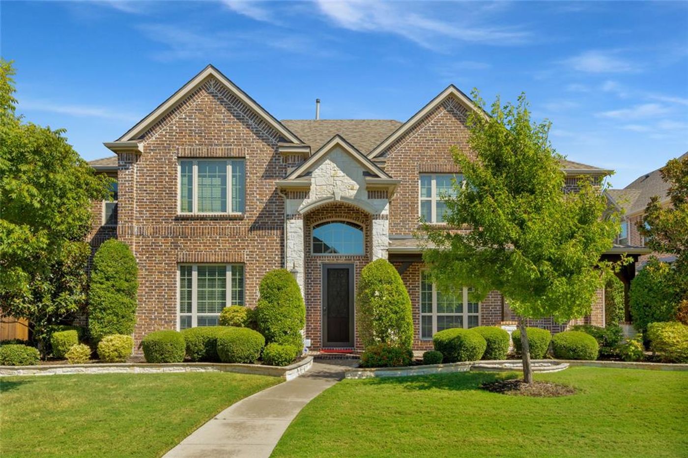 CalculateWelcome home! Situated in exclusive Castle Hills North, this former model home by David Weekly features everything a small family needs. Primary bedroom is downstairs with 3 spacious bedrooms up. Kitchen boast granite counters with knotty alder wood cabinets. Living areas are tied together with soaring ceilings and an open floor plan. Primary en suite spa like bathroom was designed with white carrara marble in the walk in shower with white quartz counters on the vanity. Fresh paint throughout. Oversized garage for the neighborhood. Perfect as a starter home or rental, come see why the area is exploding with growth and exclusivity. Centrally located near popular Grandscape and many community parks. Zoned for top rated schools. **Home is also situated next to an empty community lot that will never be built on. Enjoy forever additional parking with ample grass area to entertain or play in**